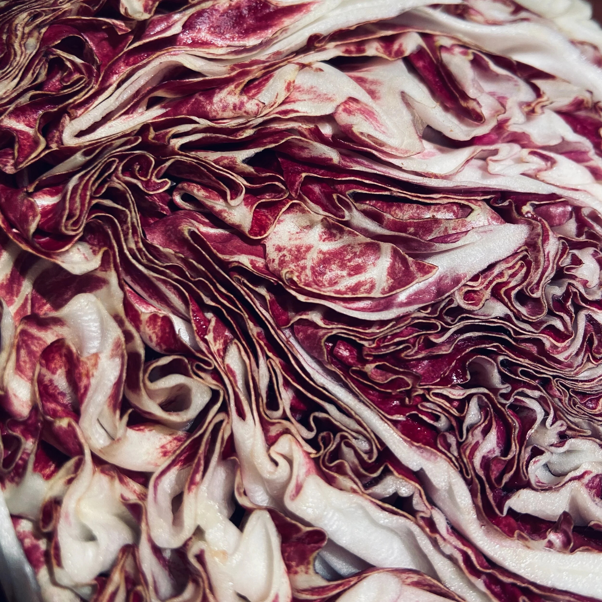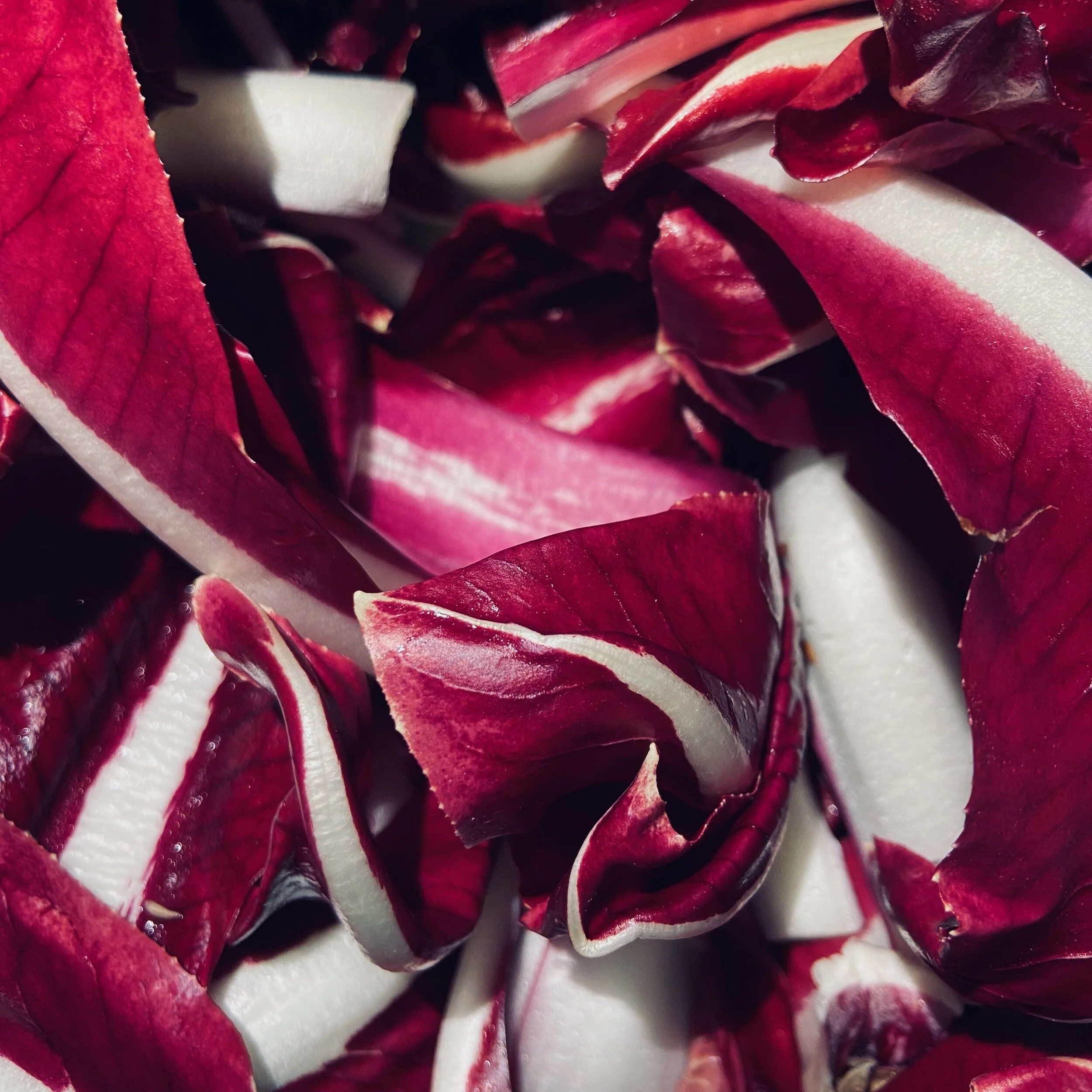 My friend Albert asked me for the radicchio salad recipe from our most recent dinner together. His request got me thinking wistfully about that pre-pandemic social event nearly a year ago now—our last before the stay at home orders began to roll out in early 2020—and also got me thinking hard about radicchio. Despite strong and fond memories of the dinner, I couldn’t remember the salad I made. In trying to jog my memory, I realized that I use a lot of radicchio in the kitchen, and that I might have something systematic to say about it.